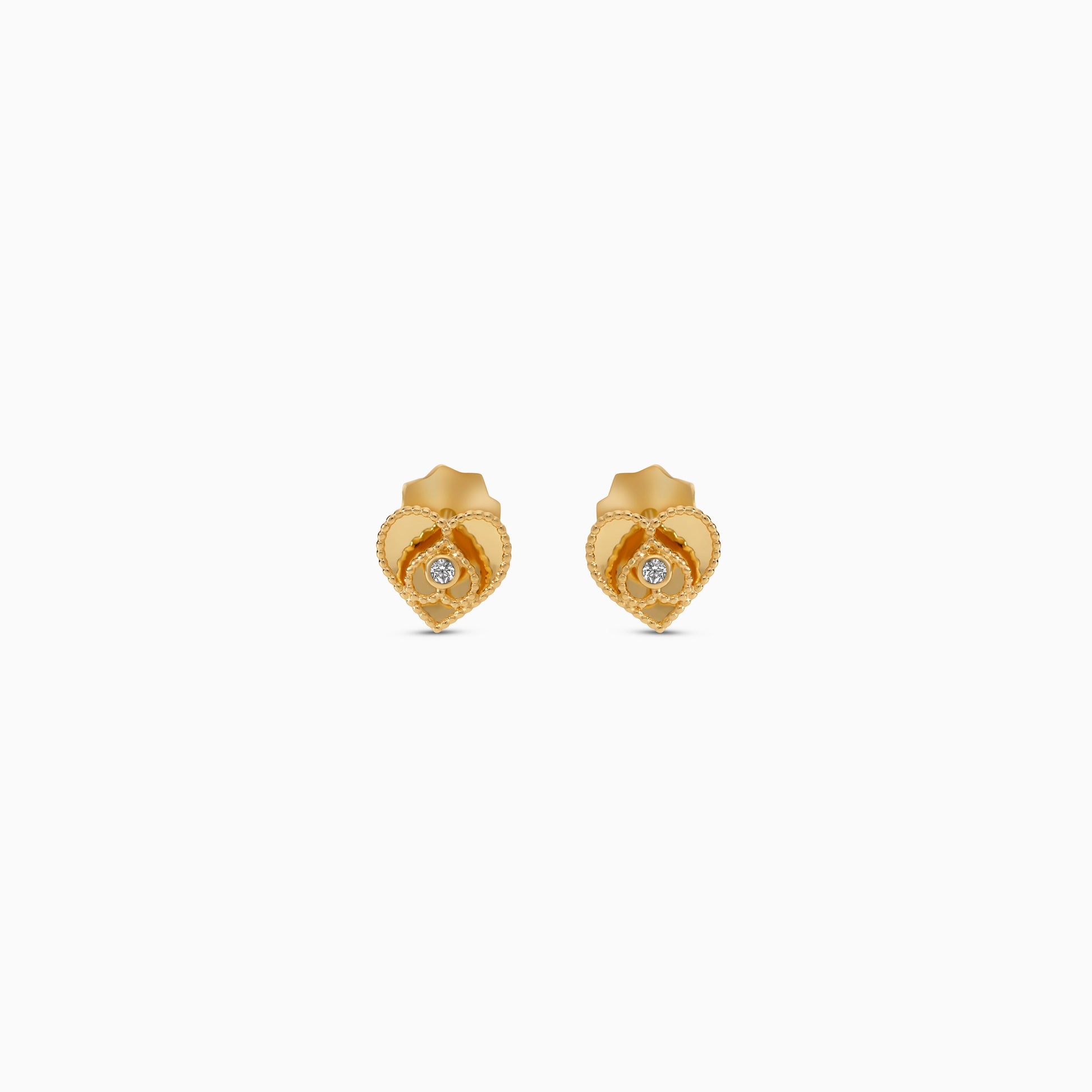 أقراط على شكل قلب من الذهب عيار 18 قيراطًا مرصعة بالزركون في المنتصف للأطفال