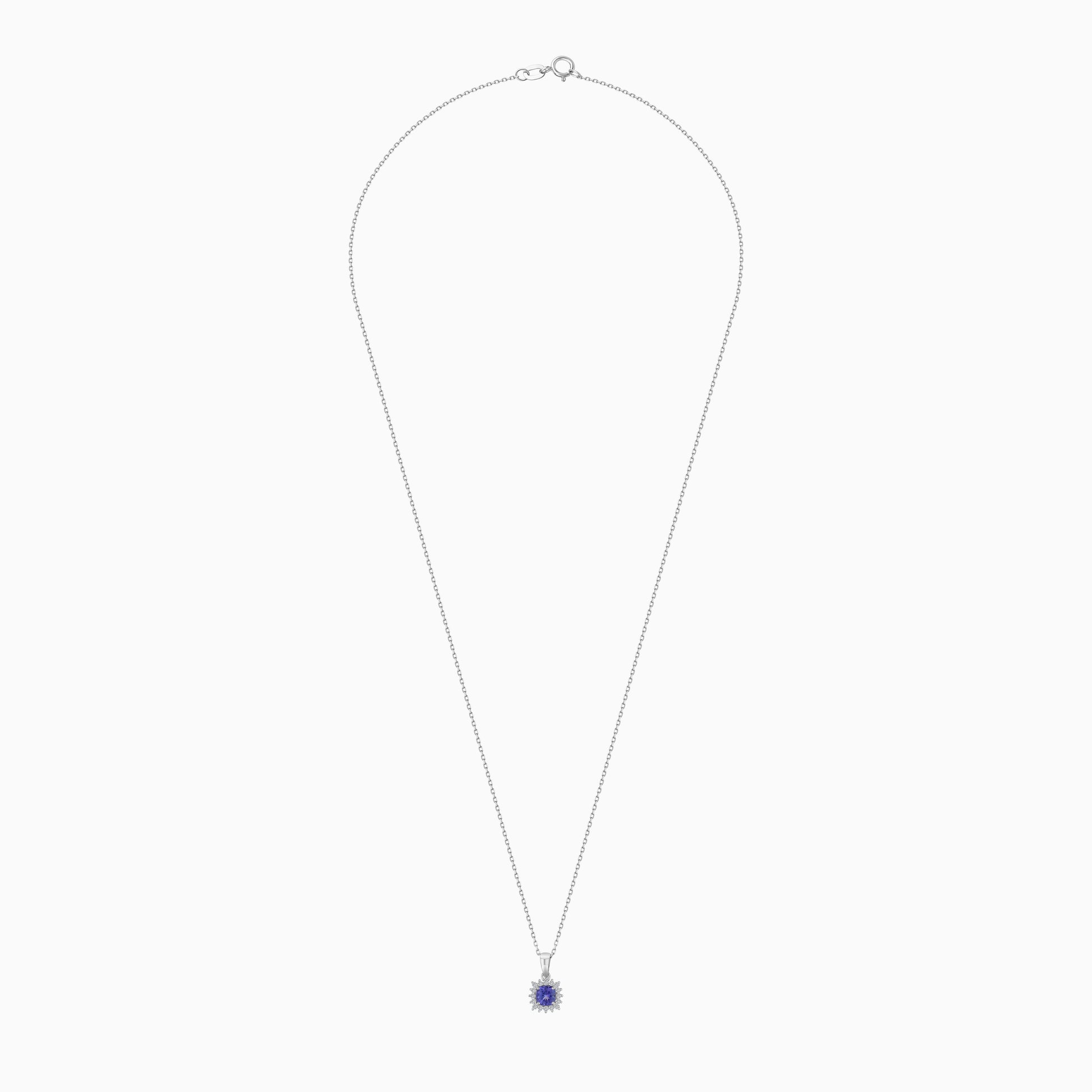 سلسلة من الذهب الابيض عيار 18 قيراطًا مع قلادة على شكل مربع مزينة بالماس الطبيعي و حجر التنزانيت الأزرق الكريم