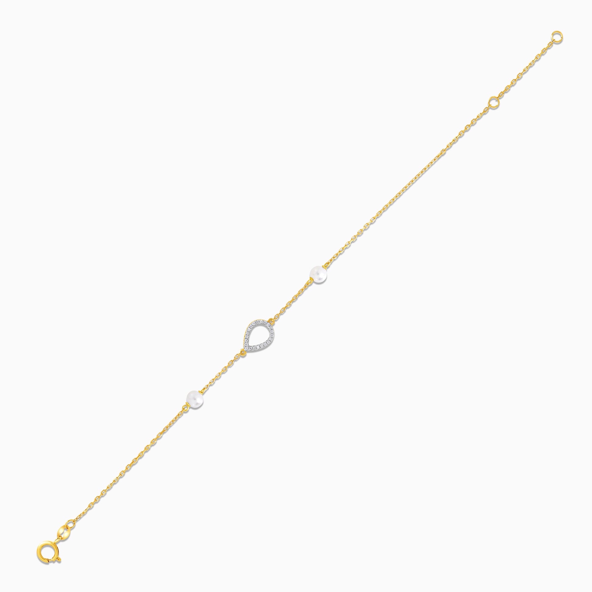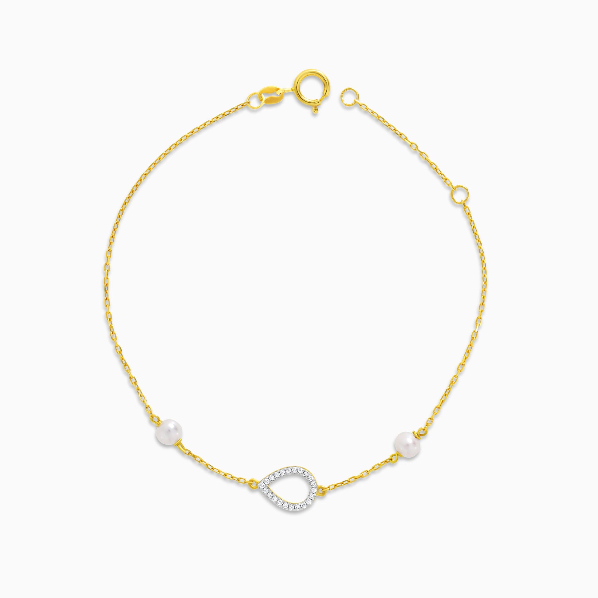 سوار من الذهب الأصفر عيار 18 قيراطًا على شكل لوزة مرصع بالألماس واللؤلؤ الأبيض - مجموعة دانا