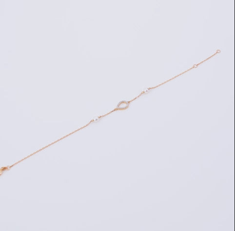 اكتشفي الأناقة مع سوار مجموعة دانا المصنوع من الذهب الأصفر عيار 18 قيراطًا، والذي يتميز بقطعة مركزية على شكل لوزة مرصعة بأحجار ألماس طبيعية متلألئة ولآلئ بيضاء رقيقة. مزيج مثالي من الرقي والجمال الخالد.
