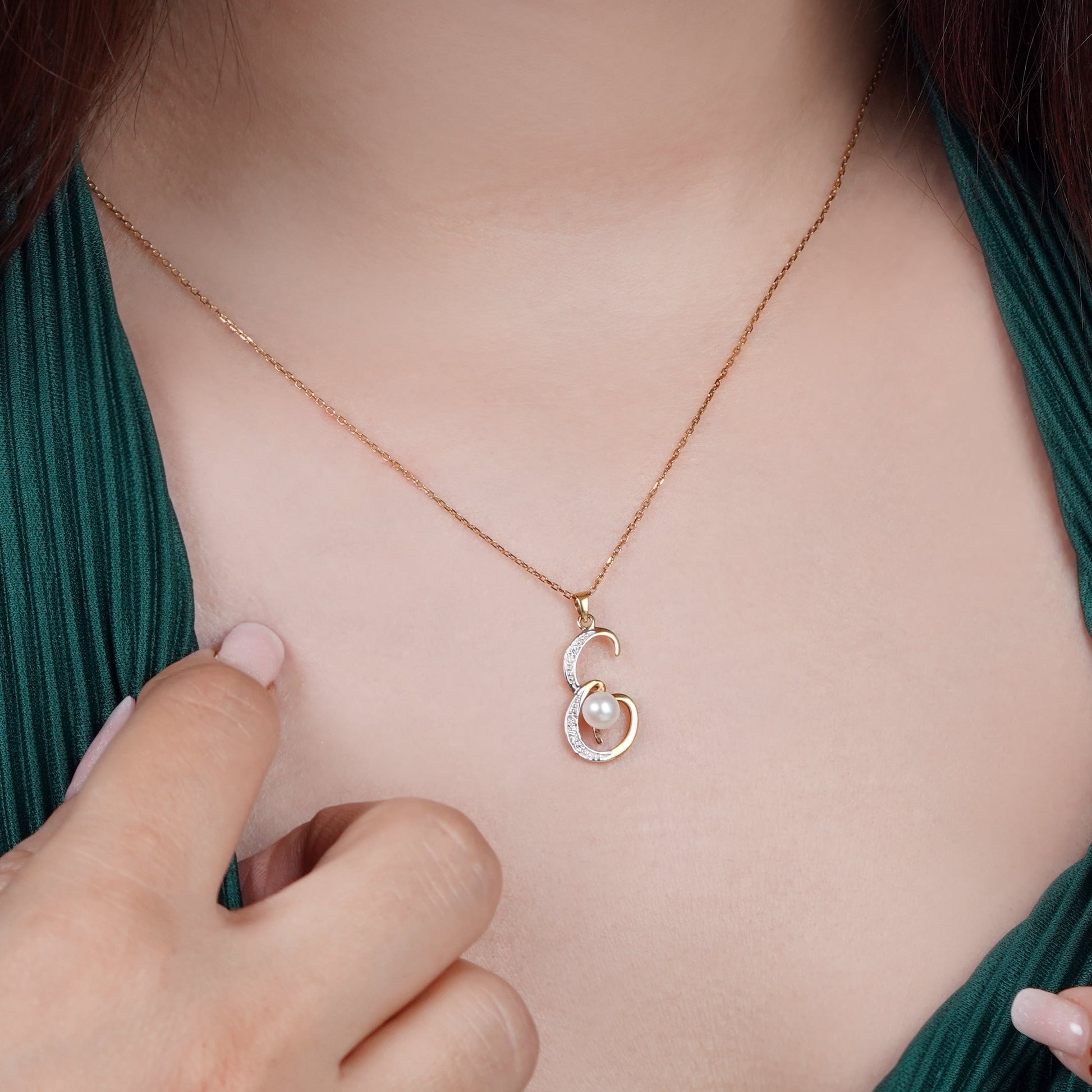 قلادة من الذهب الأصفر عيار 18 قيراطًا على شكل حرف "e" مرصعة بالألماس الطبيعي واللؤلؤ
