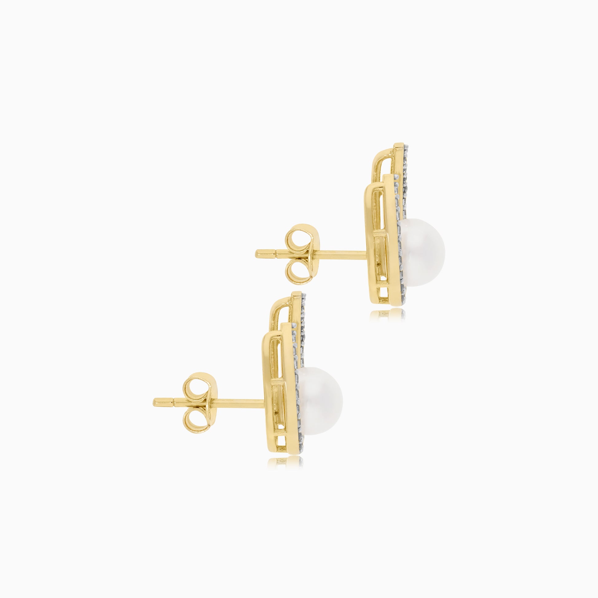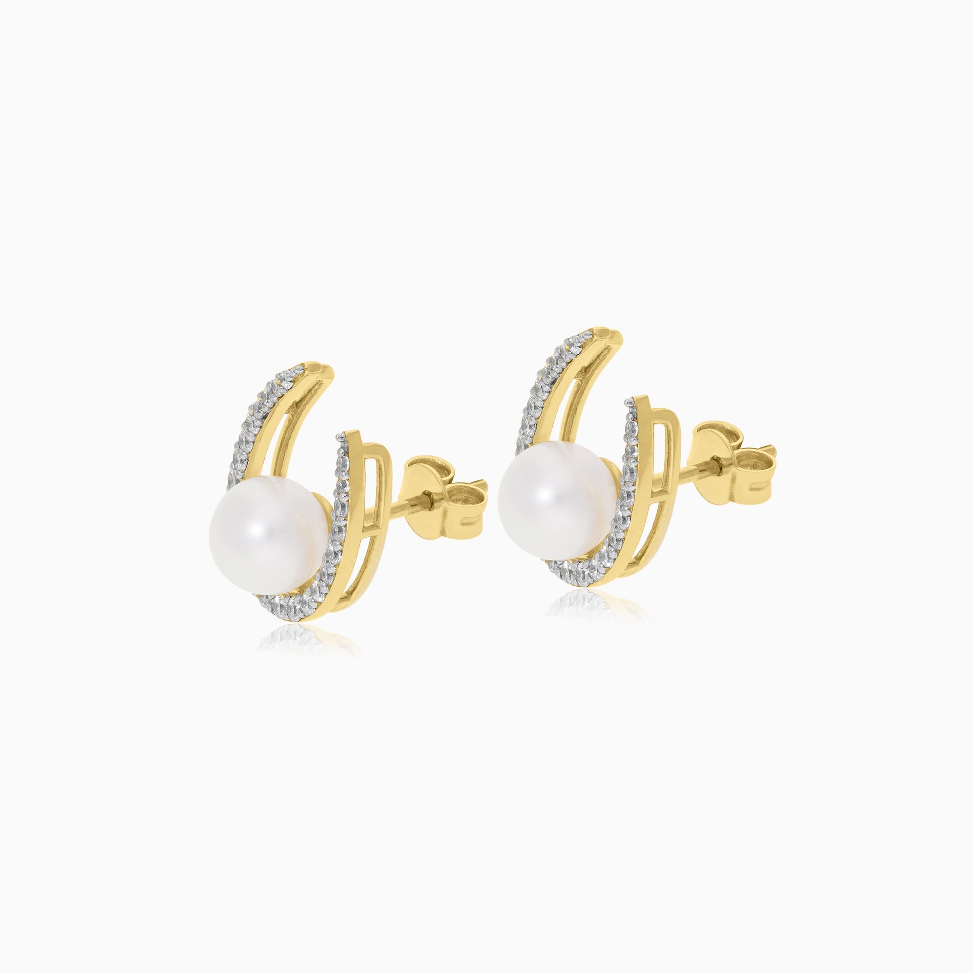 أقراط من الذهب الأصفر عيار 18 قيراطًا مرصعة باللؤلؤ وأحجار الزركون من مجموعة دانا