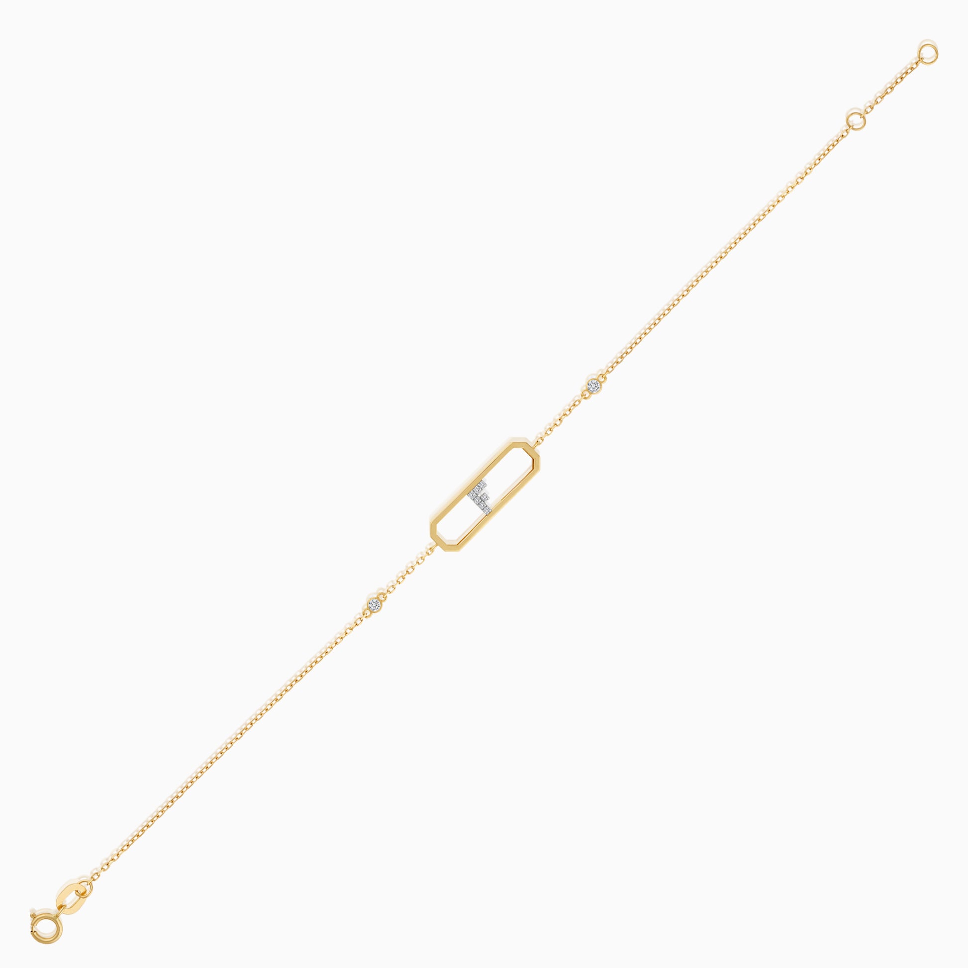 سوار من الذهب الأصفر عيار 18 قيراطًا مرصع بالألماس الطبيعي بحرف "F"