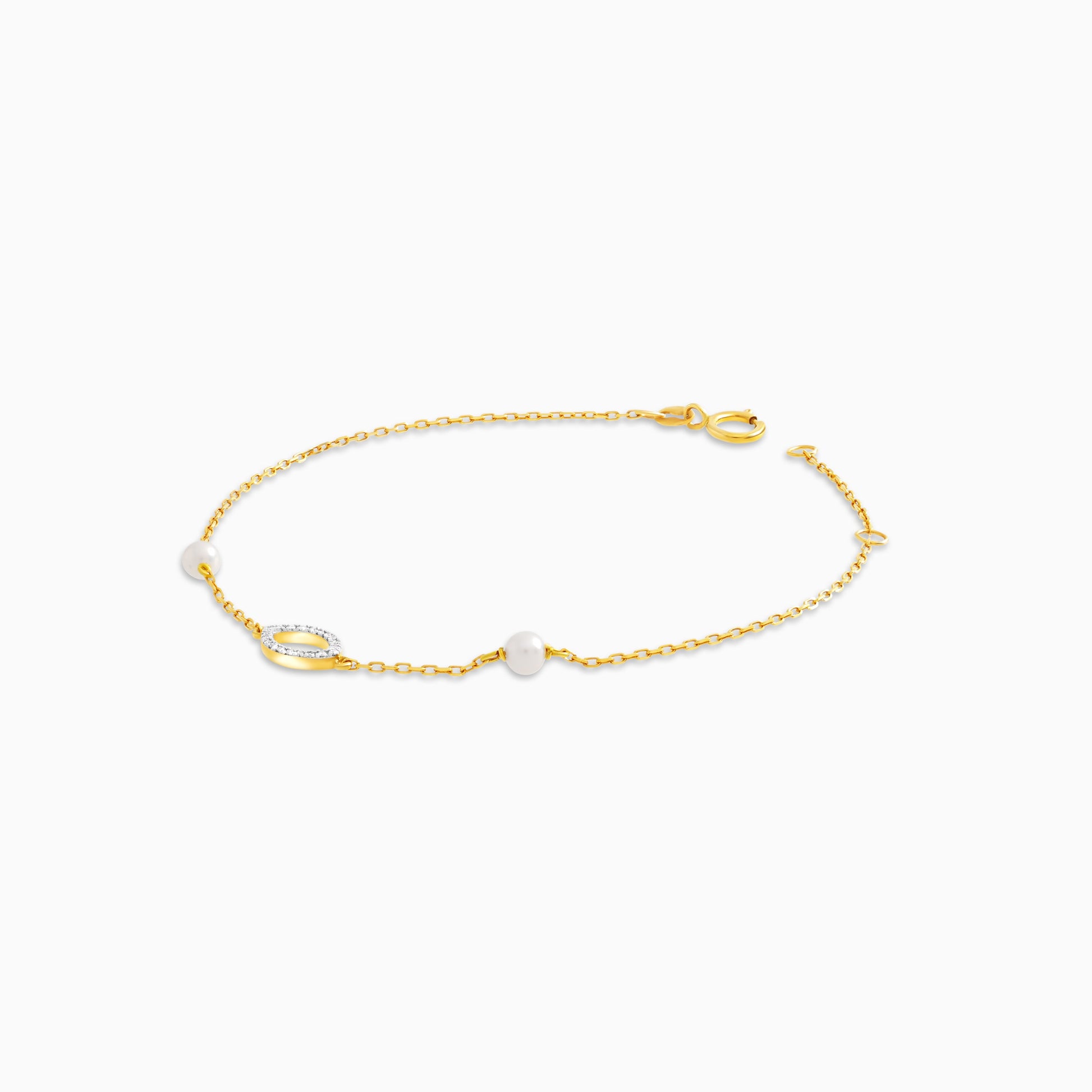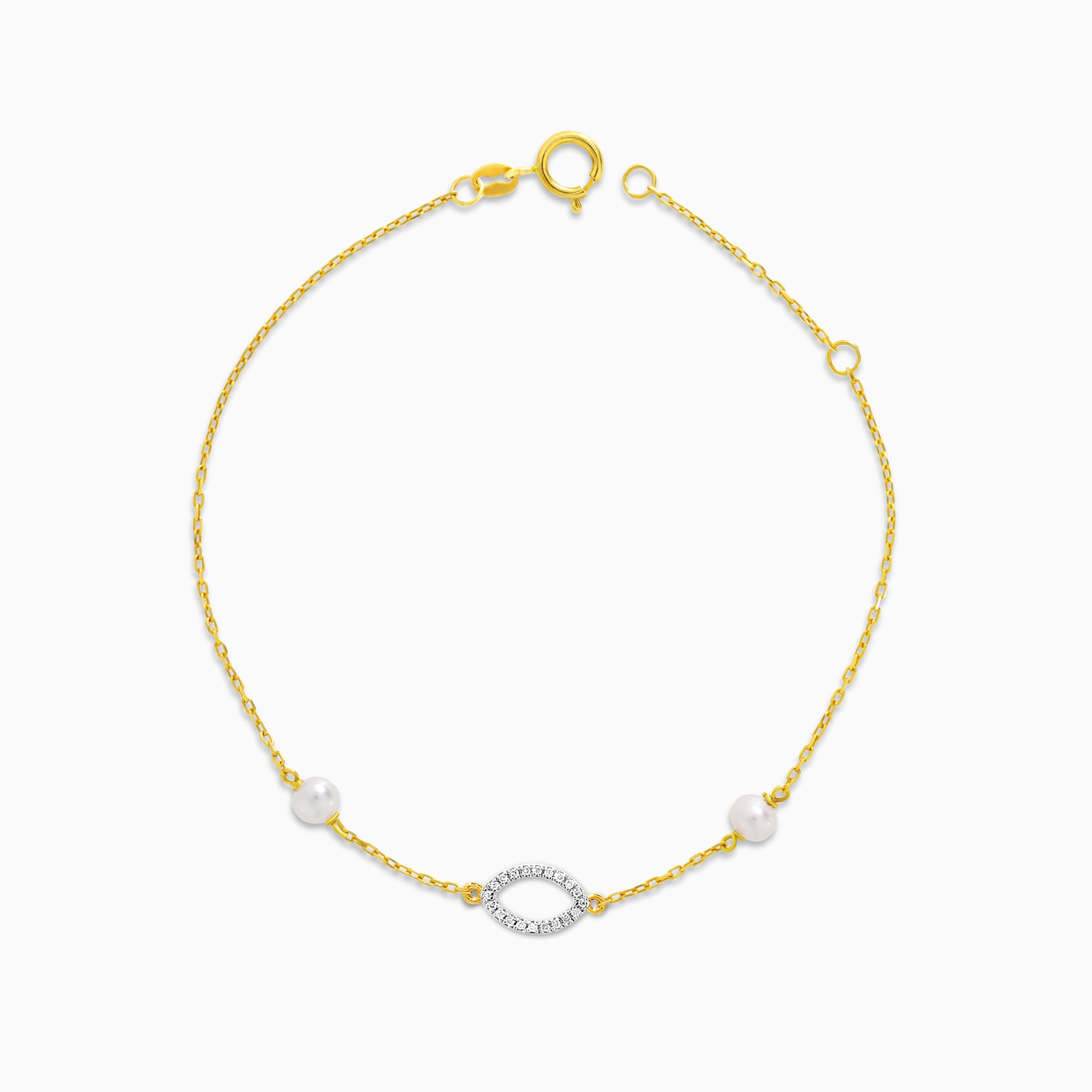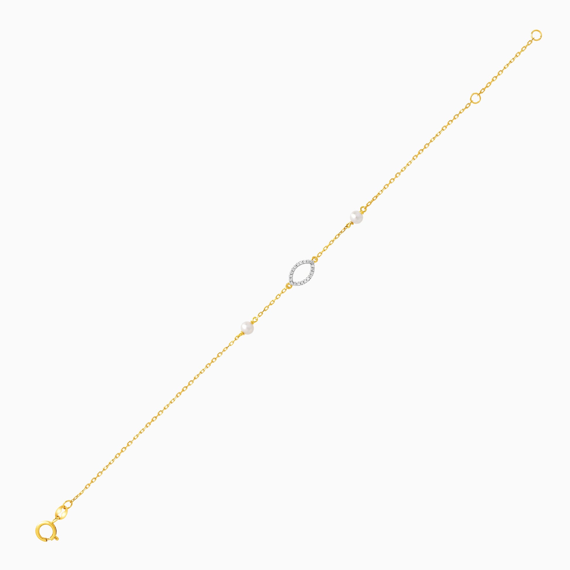 سوار بيضاوي من الذهب الأصفر عيار 18 قيراطًا مرصع بالألماس واللؤلؤ - مجموعة دانا
