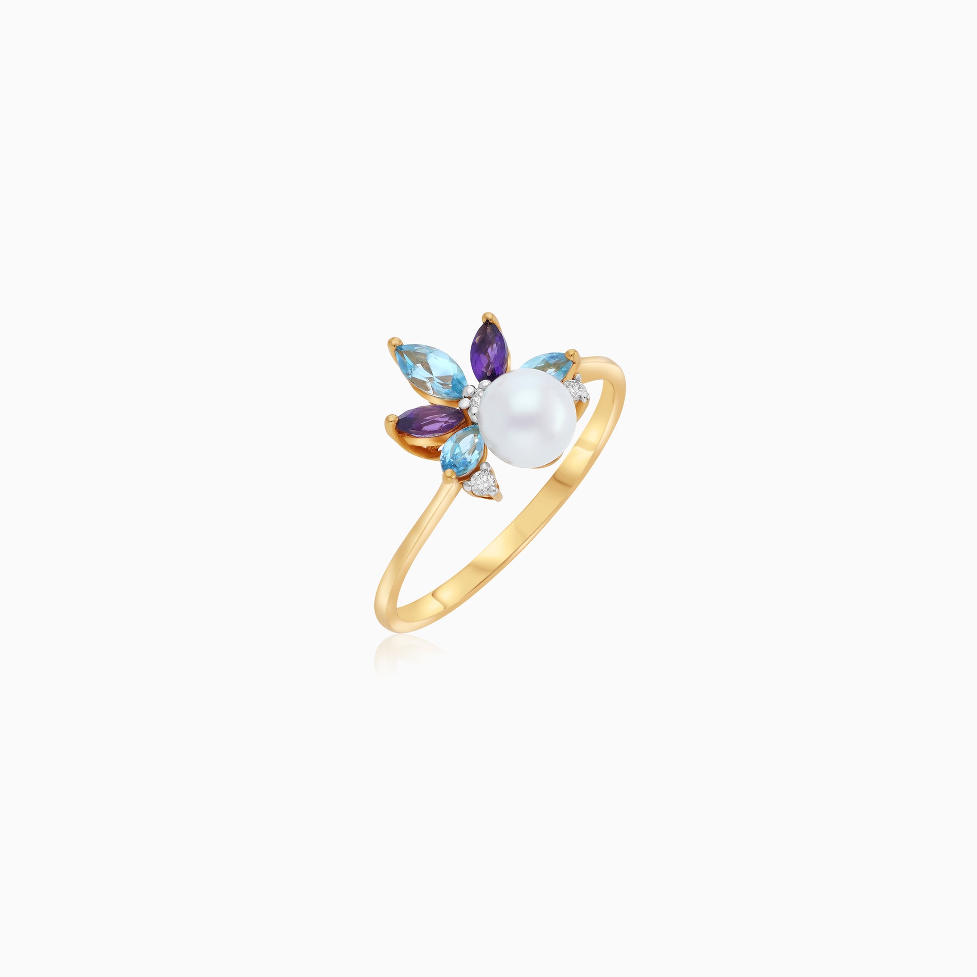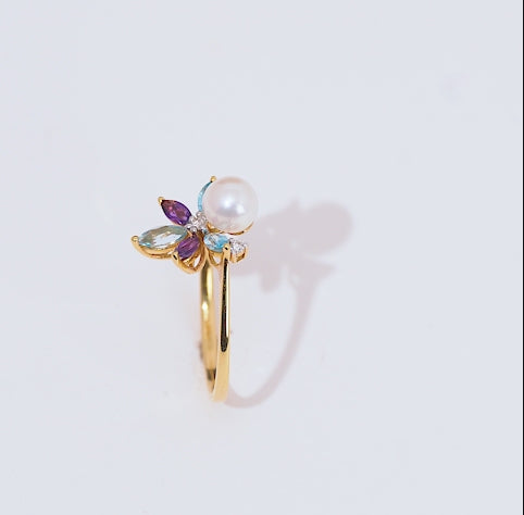 خاتم من الذهب الأصفر عيار 18 قيراطًا مرصع بالألماس والأحجار الكريمة ولؤلؤة واحدة - مجموعة دانا