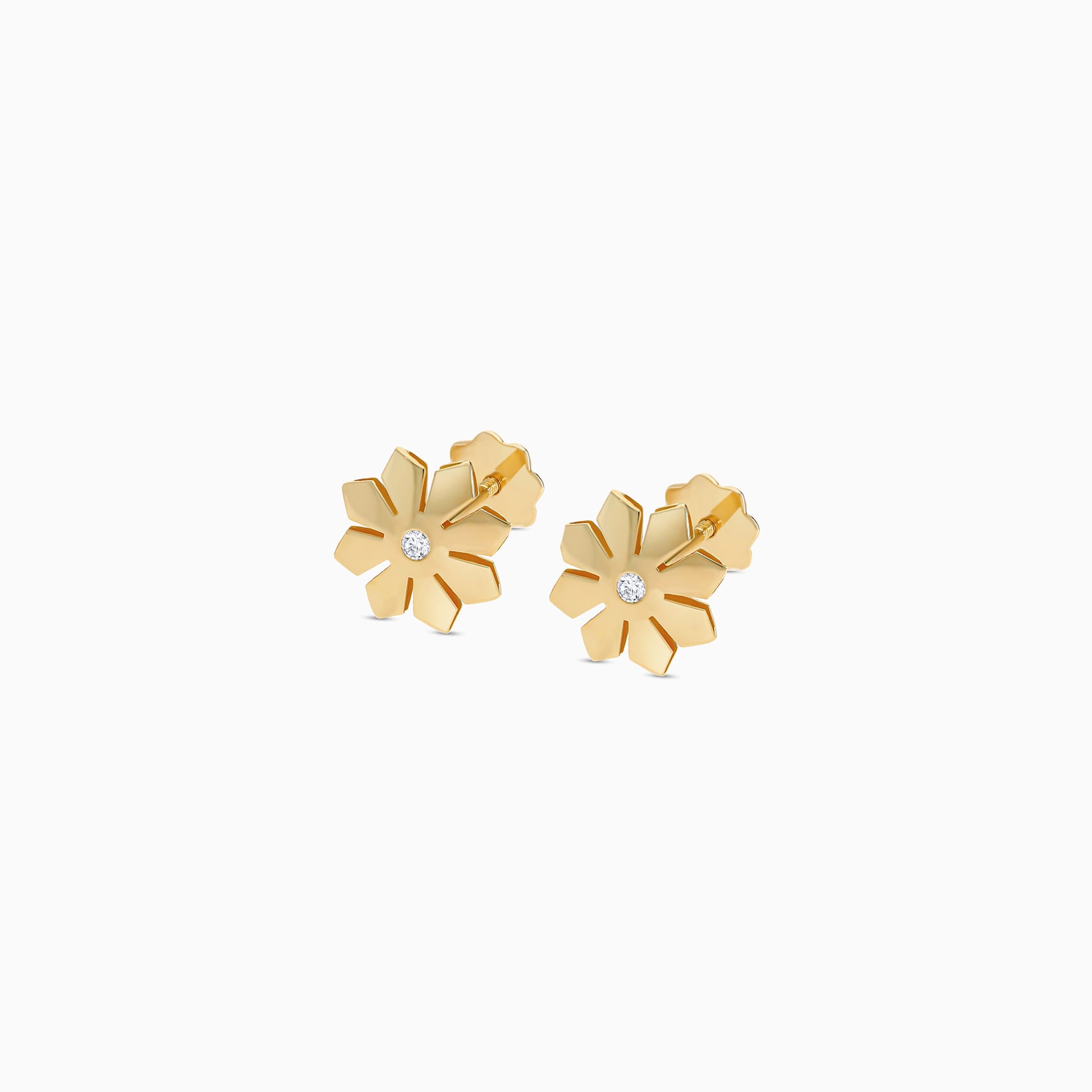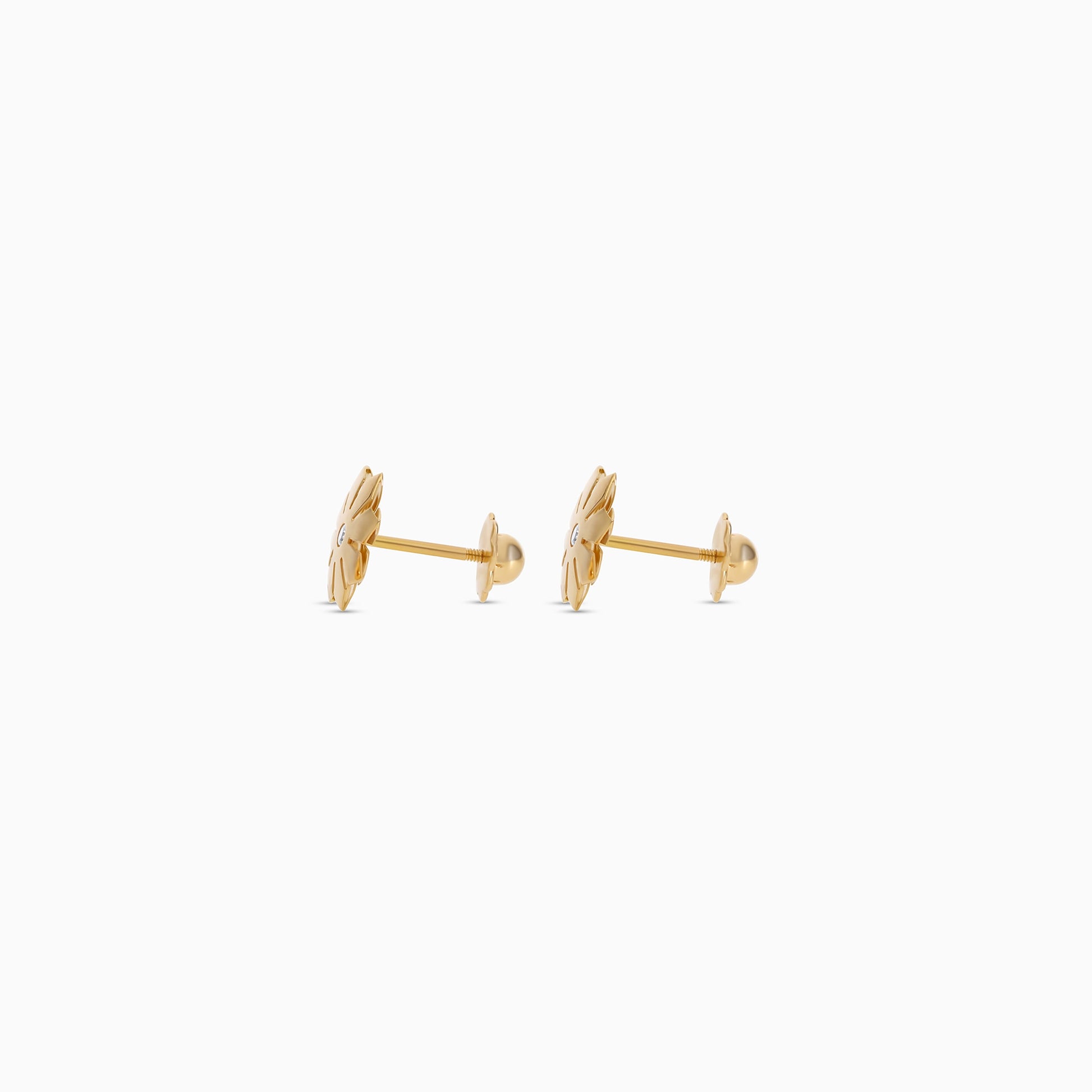 أقراط أطفال على شكل زهرة من الذهب عيار 18 قيراطًا مرصعة بحجر زركون واحد