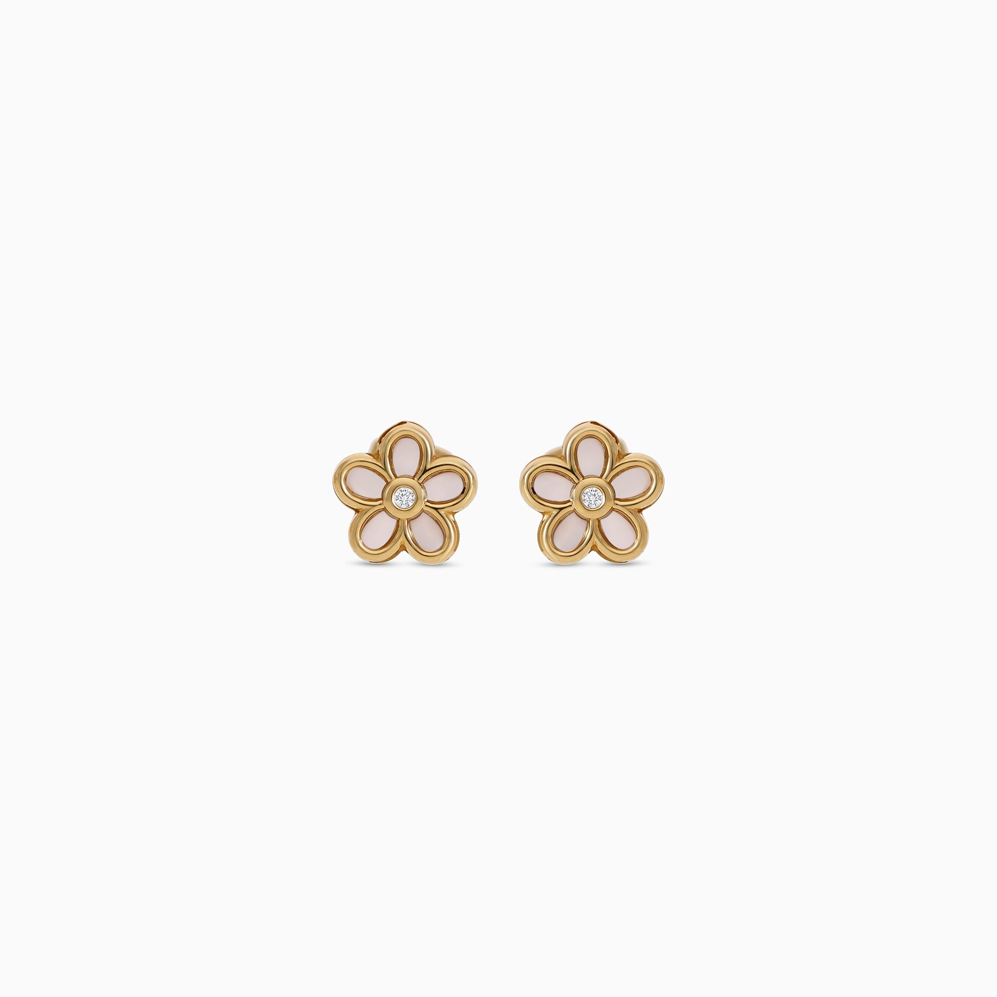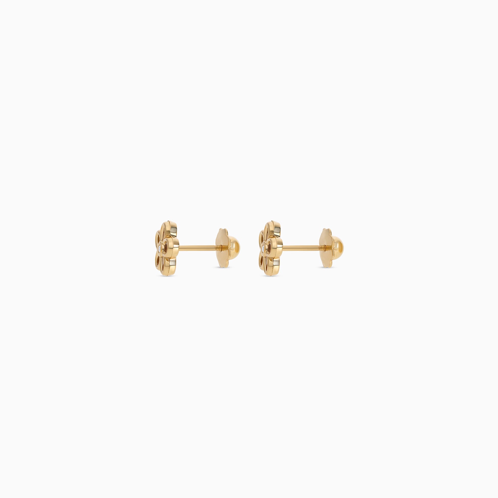 18K Gold Flower Shape Earrings with Center Zircon for Kids
