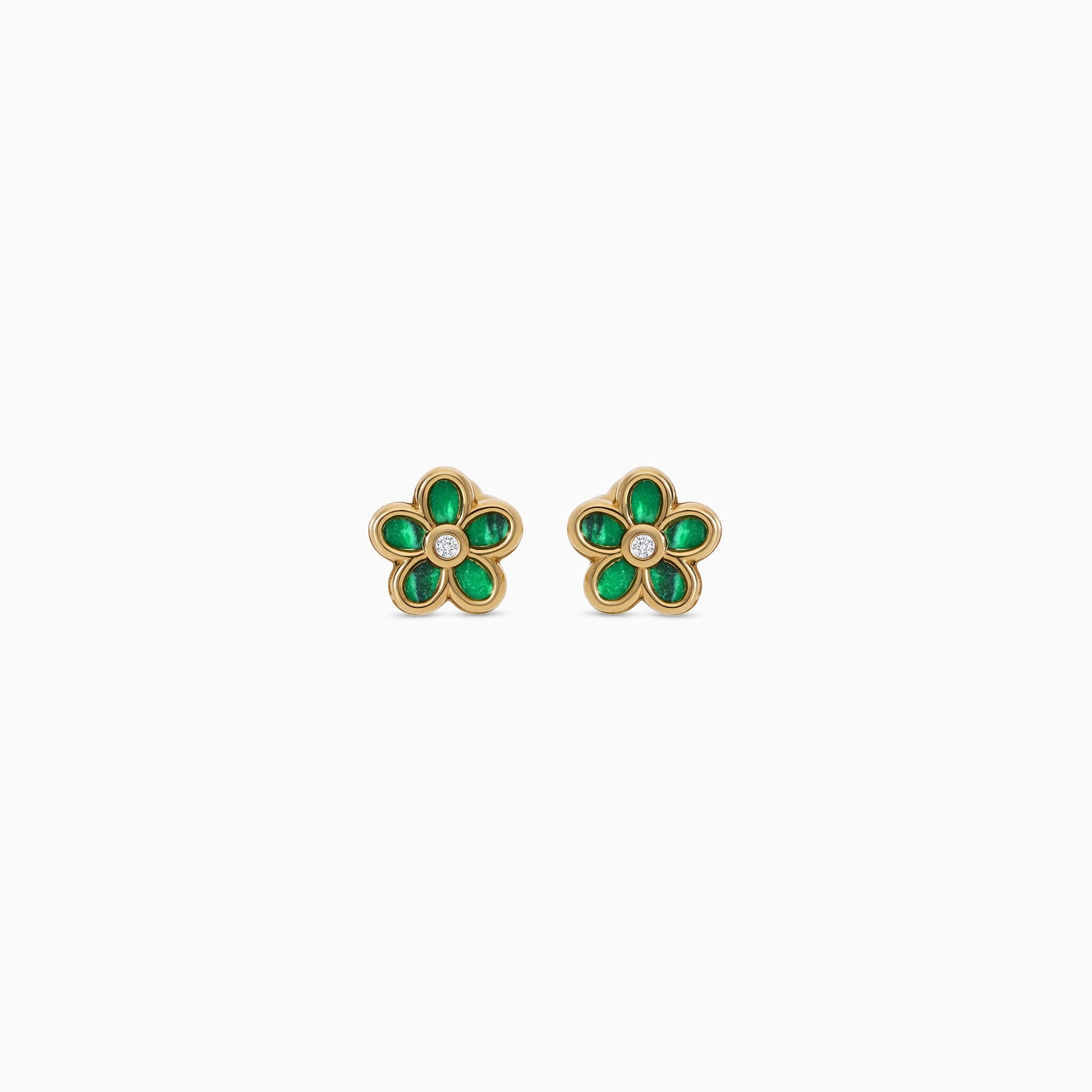 18k Yellow Gold Flower Earrings with Malachite & Zircon Stone | Spanish Kids Collection