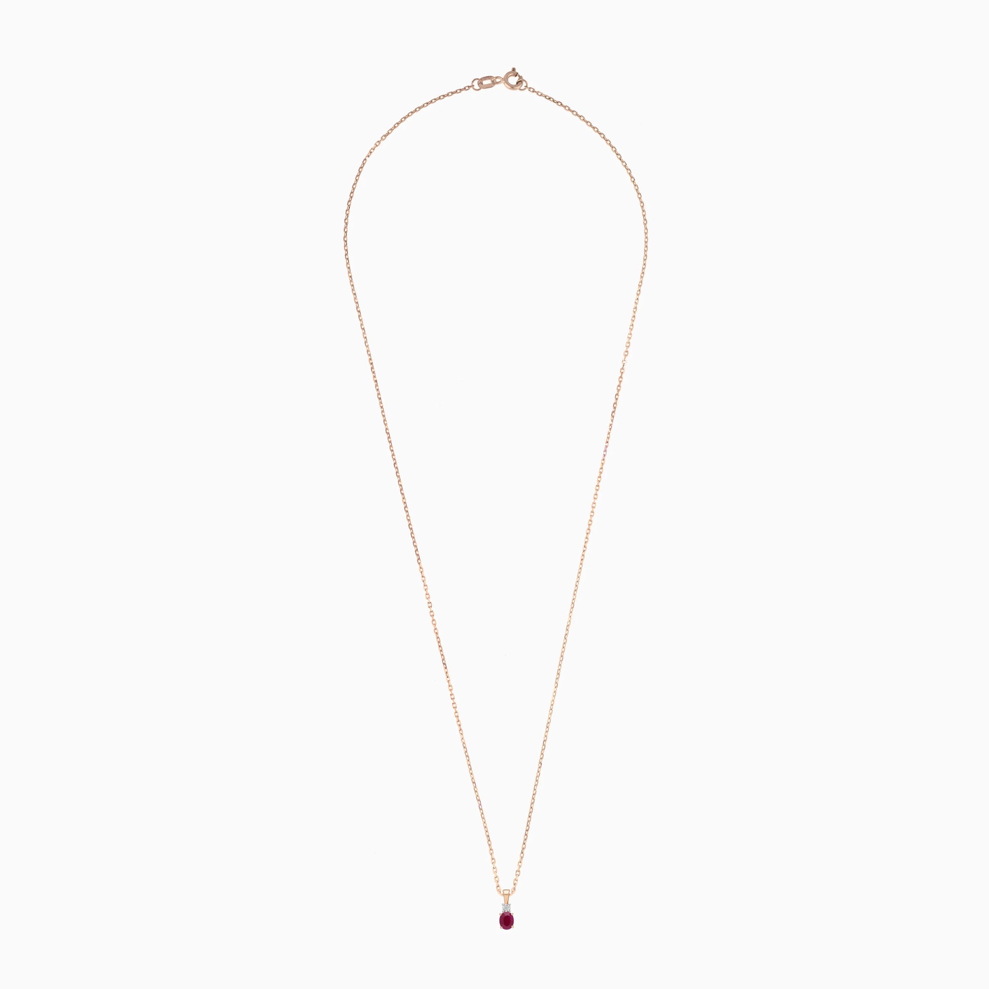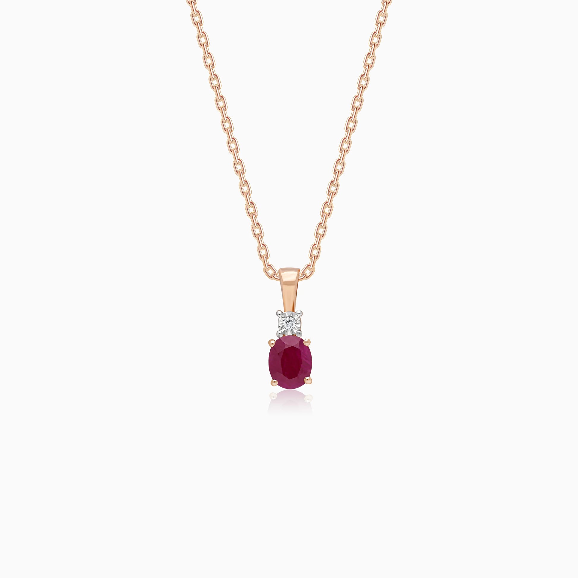 18k Rose gold Necklace decorated with natural diamonds and ruby stones | colour classic