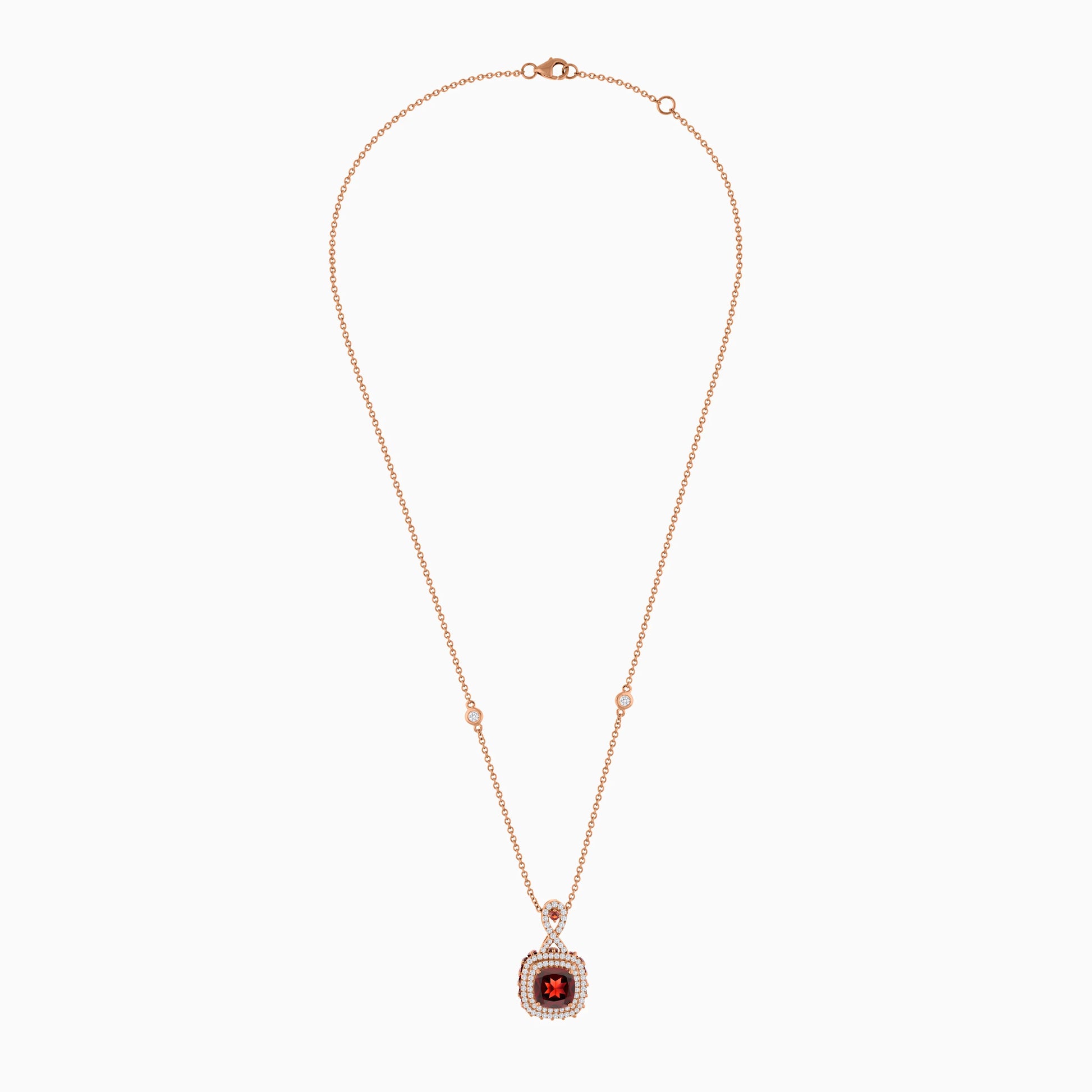 18K Rose Gold Necklace featuring a stunning Natural Diamond and Garnet stones