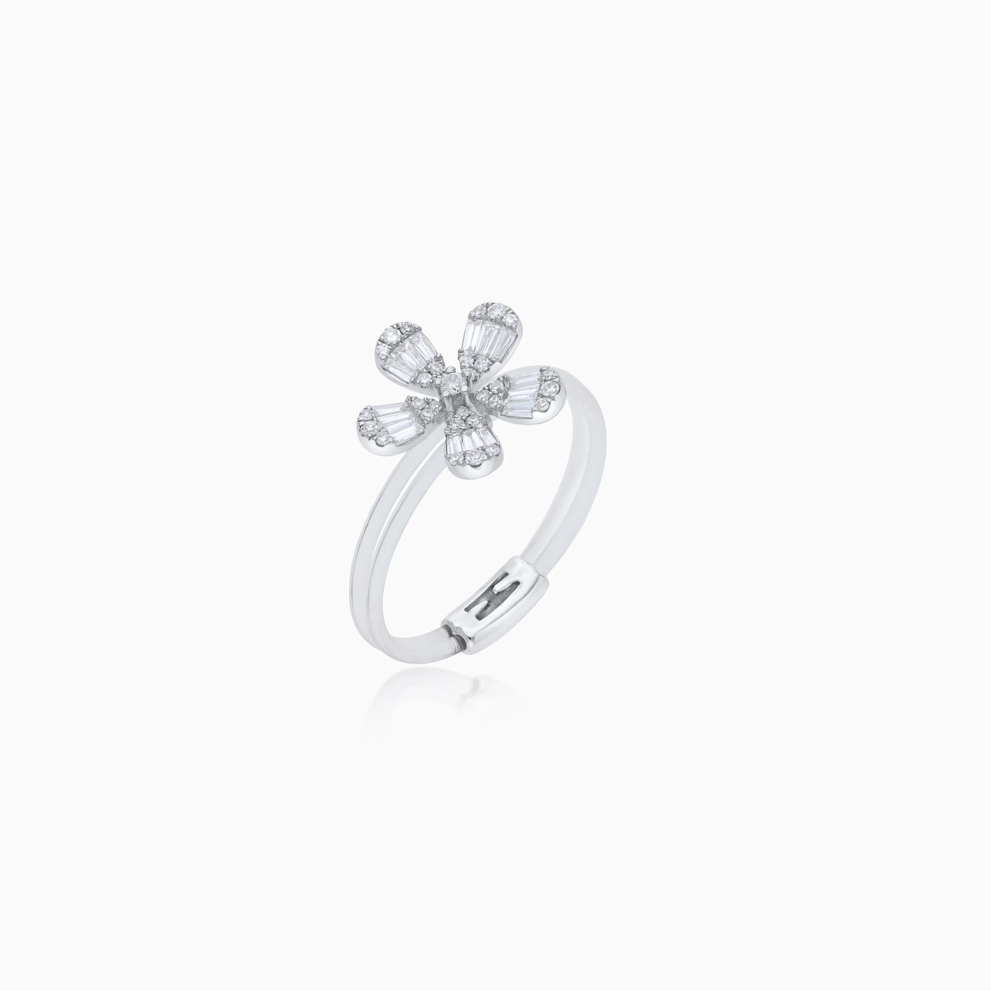 18K White Gold Flower Ring with Baguette Diamonds – Float Collection
