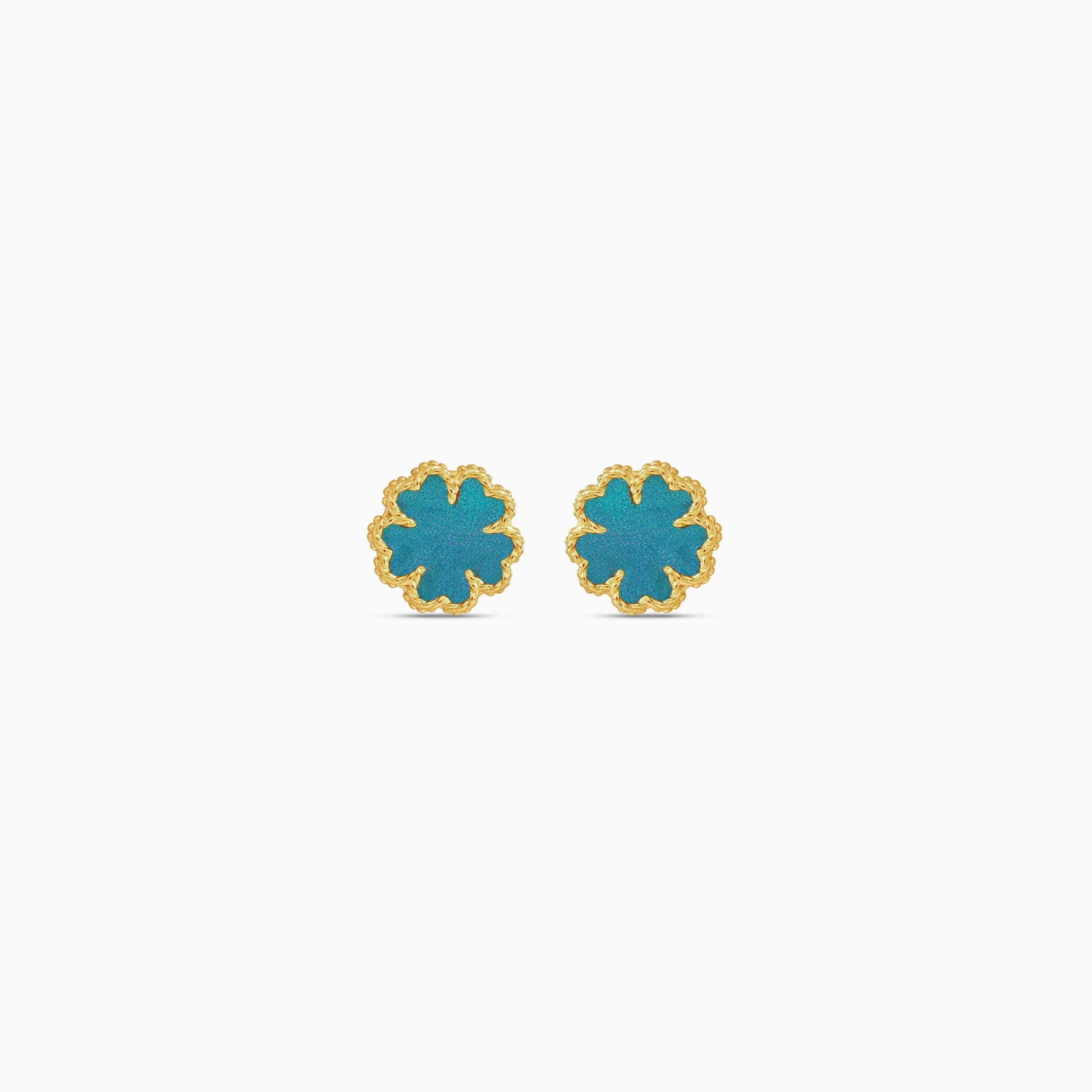 18k yellow gold earrings with green flower shaped for kids - Vivante collection