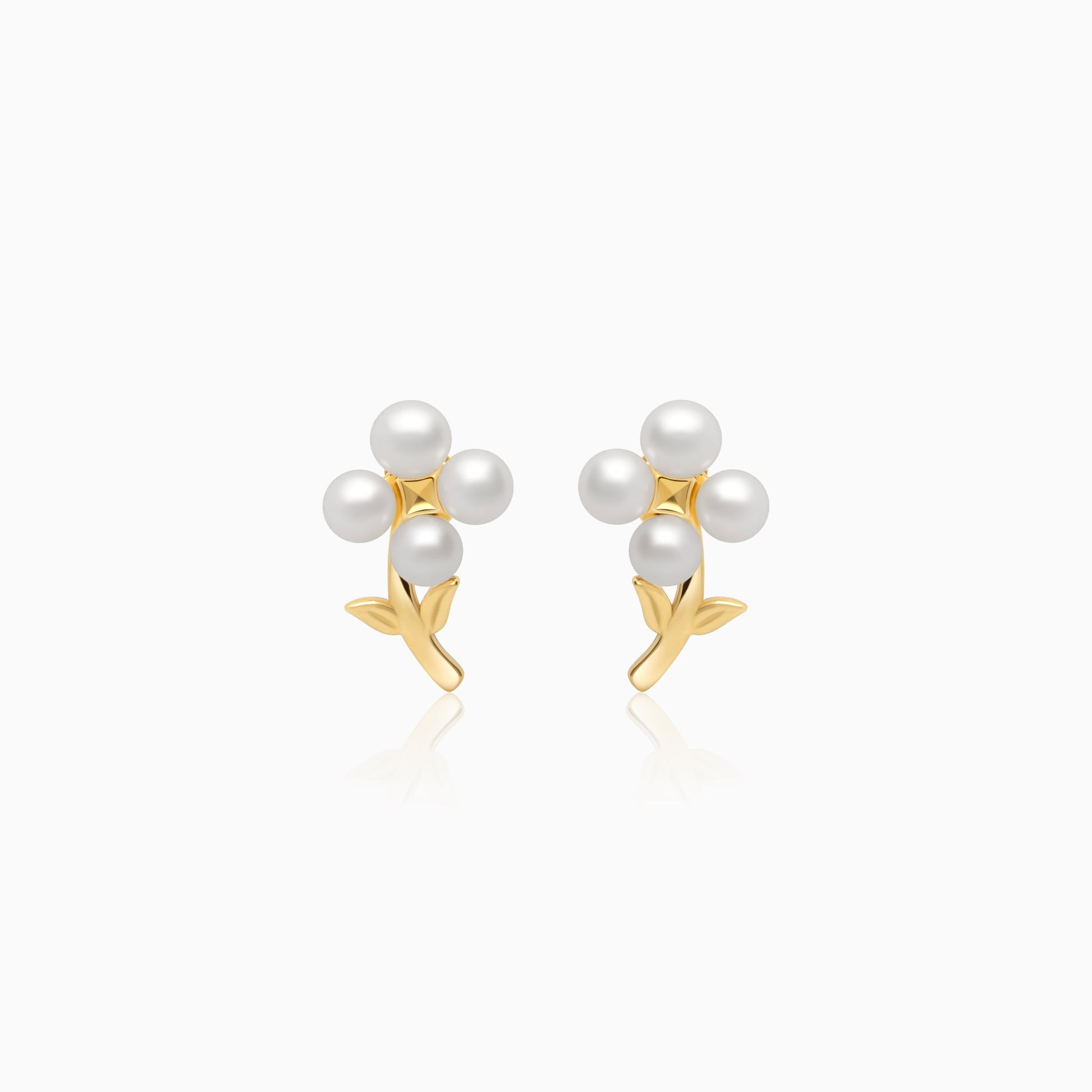 18k yellow gold flower shape earrings with pearls From Danah Collection