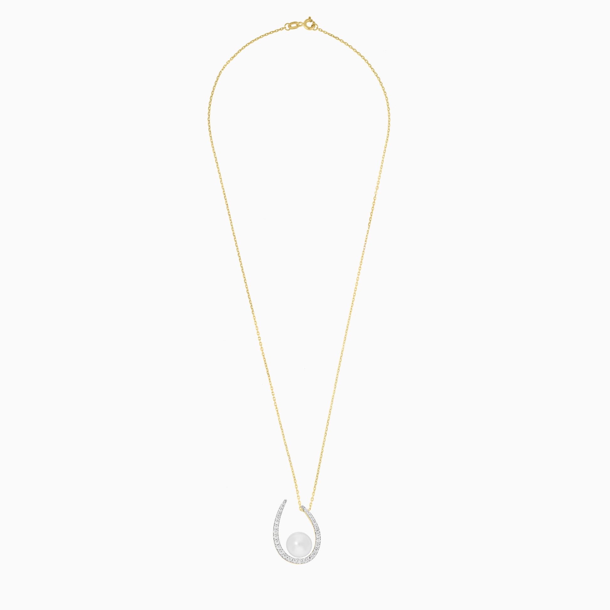 18K Yellow Gold Necklace adorned with Pearls and Sparkling Zircon Stones from the Danah Collection