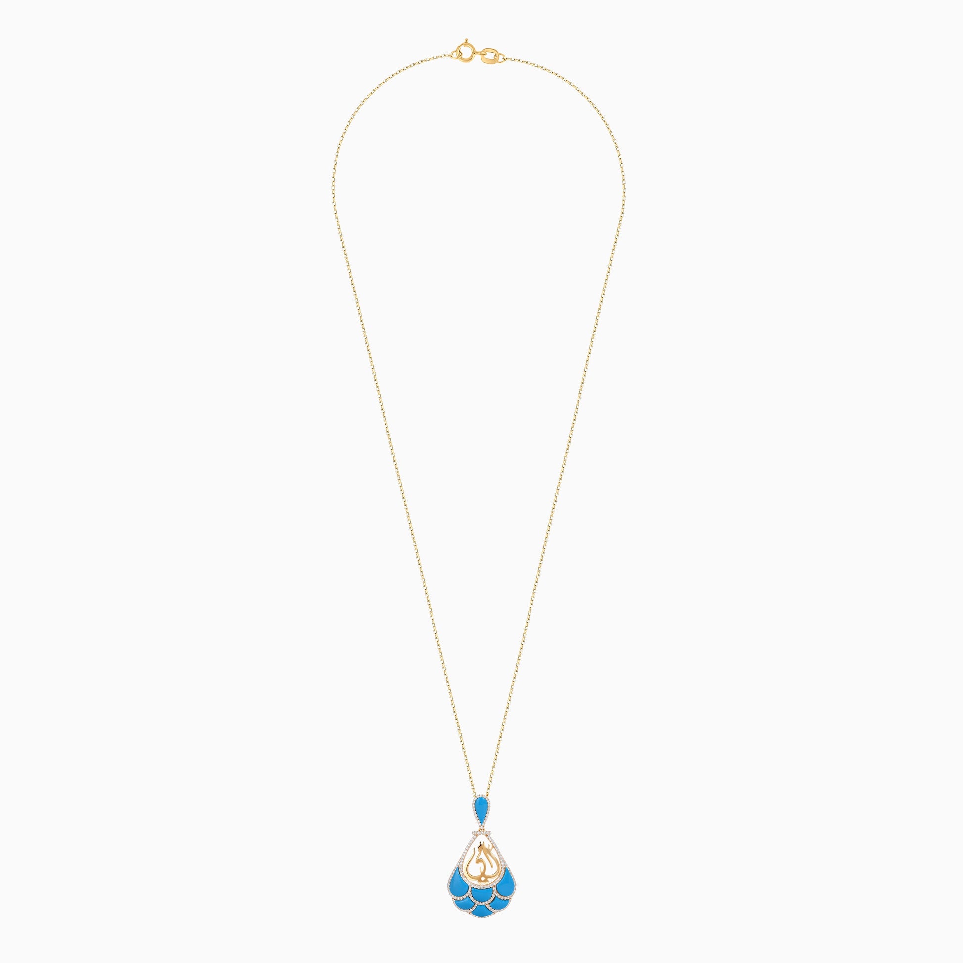 18K Yellow Gold Necklace with 'Mother' Centerpiece, Adorned with Turquoise and Natural Diamonds