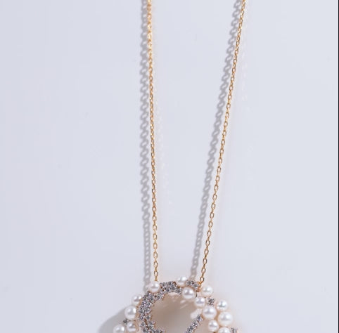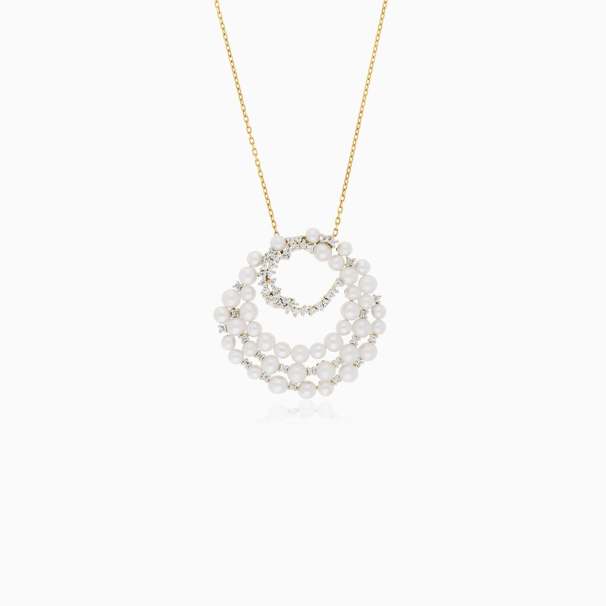 18K yellow gold necklace adorned with lustrous pearls and shimmering zircon stones from the Danah Collection