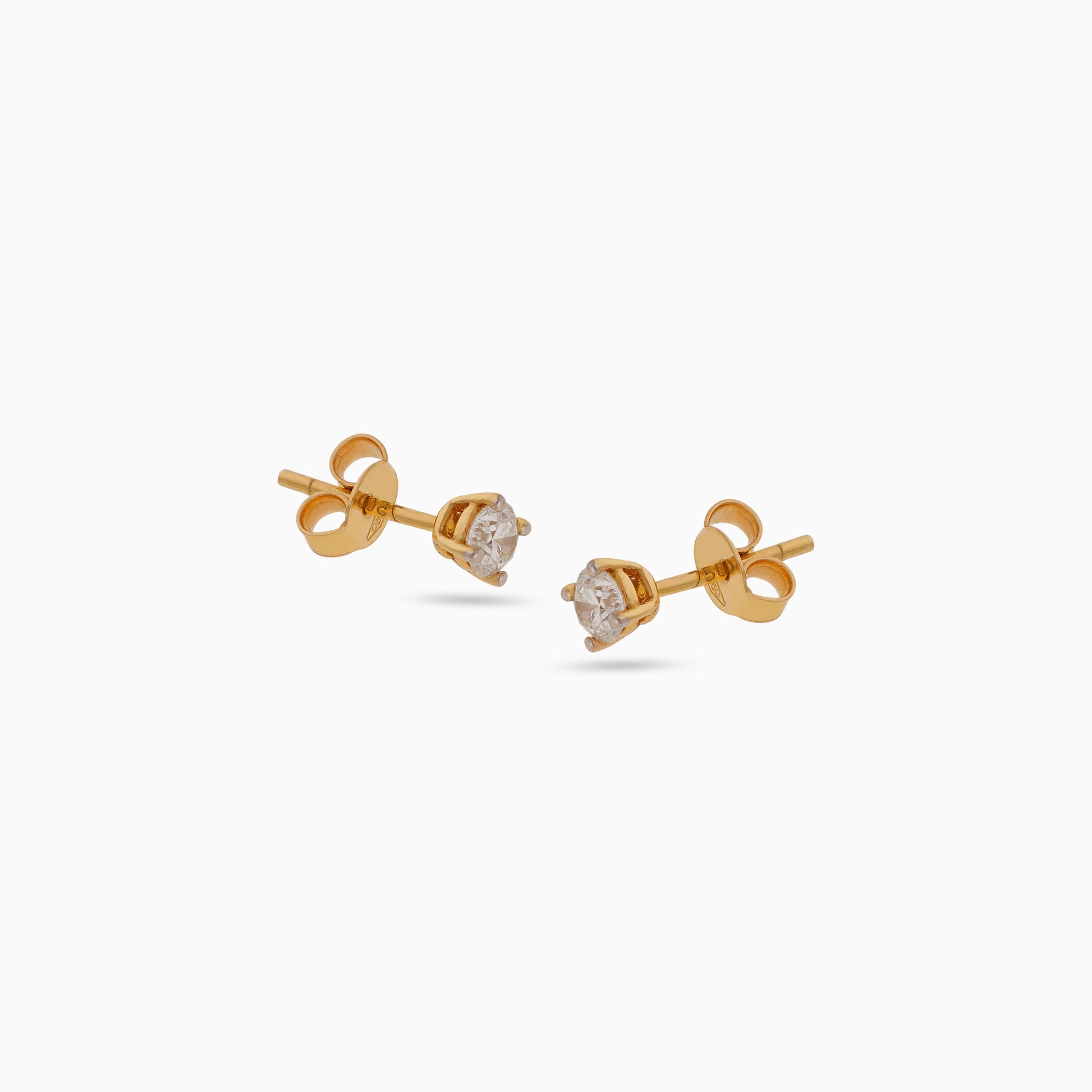 18K Yellow Gold Stud Earrings with Solitaire Natural Diamond
