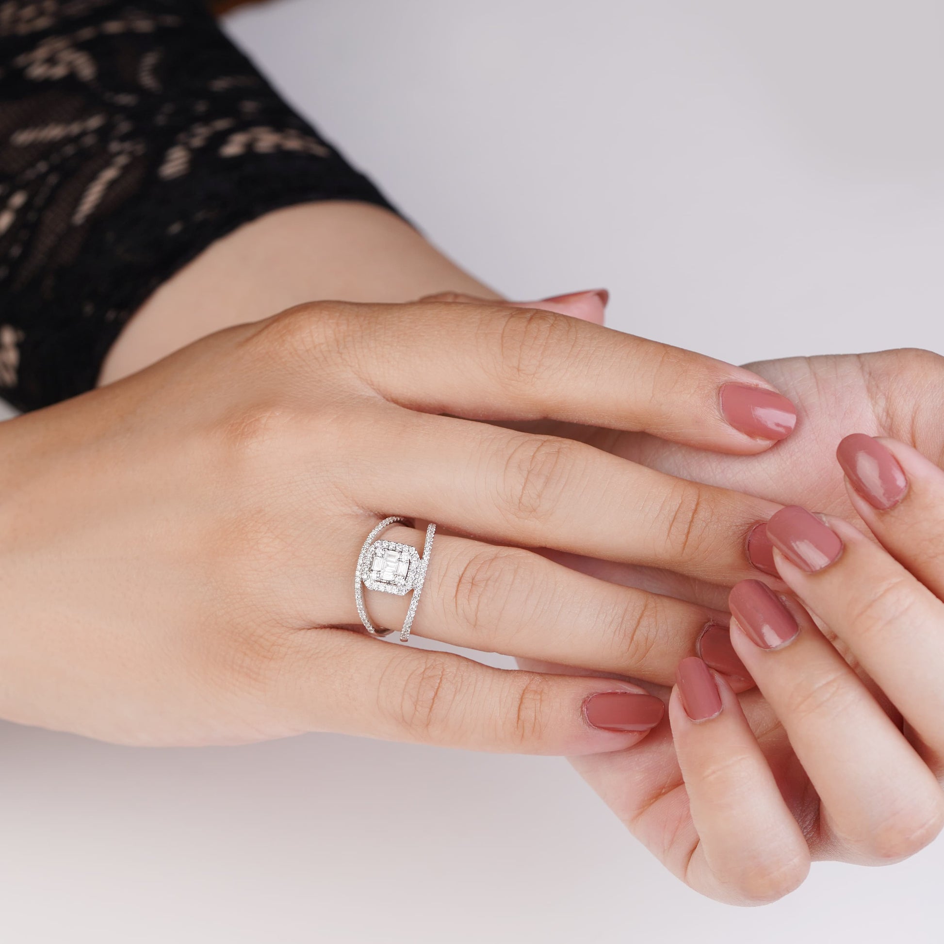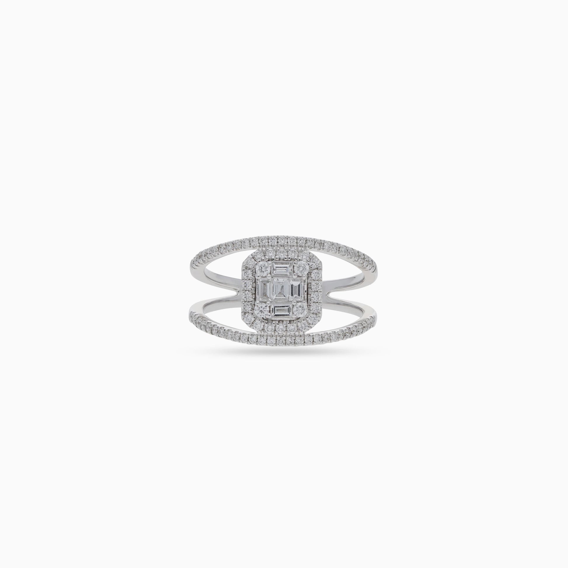 Indulge in timeless elegance with this 18K White Gold Ring, a true masterpiece from the Carre Collection. Expertly crafted, this stunning ring features brilliant natural diamonds meticulously set to enhance its radiant appeal. At its heart lies a sparkling square baguette diamond, adding a touch of geometric precision and sophistication.