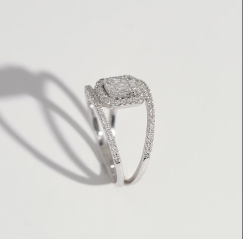 18k white gold ring with natural diamonds & square baguette diamond – carre collection