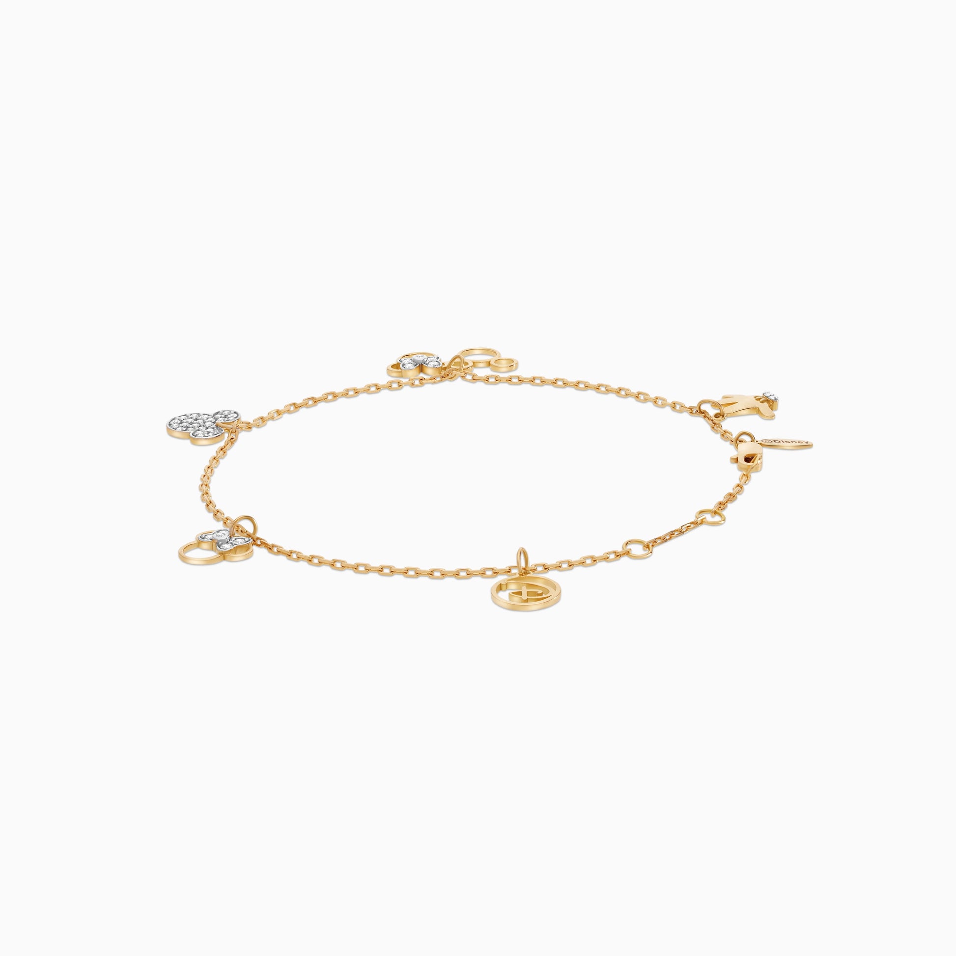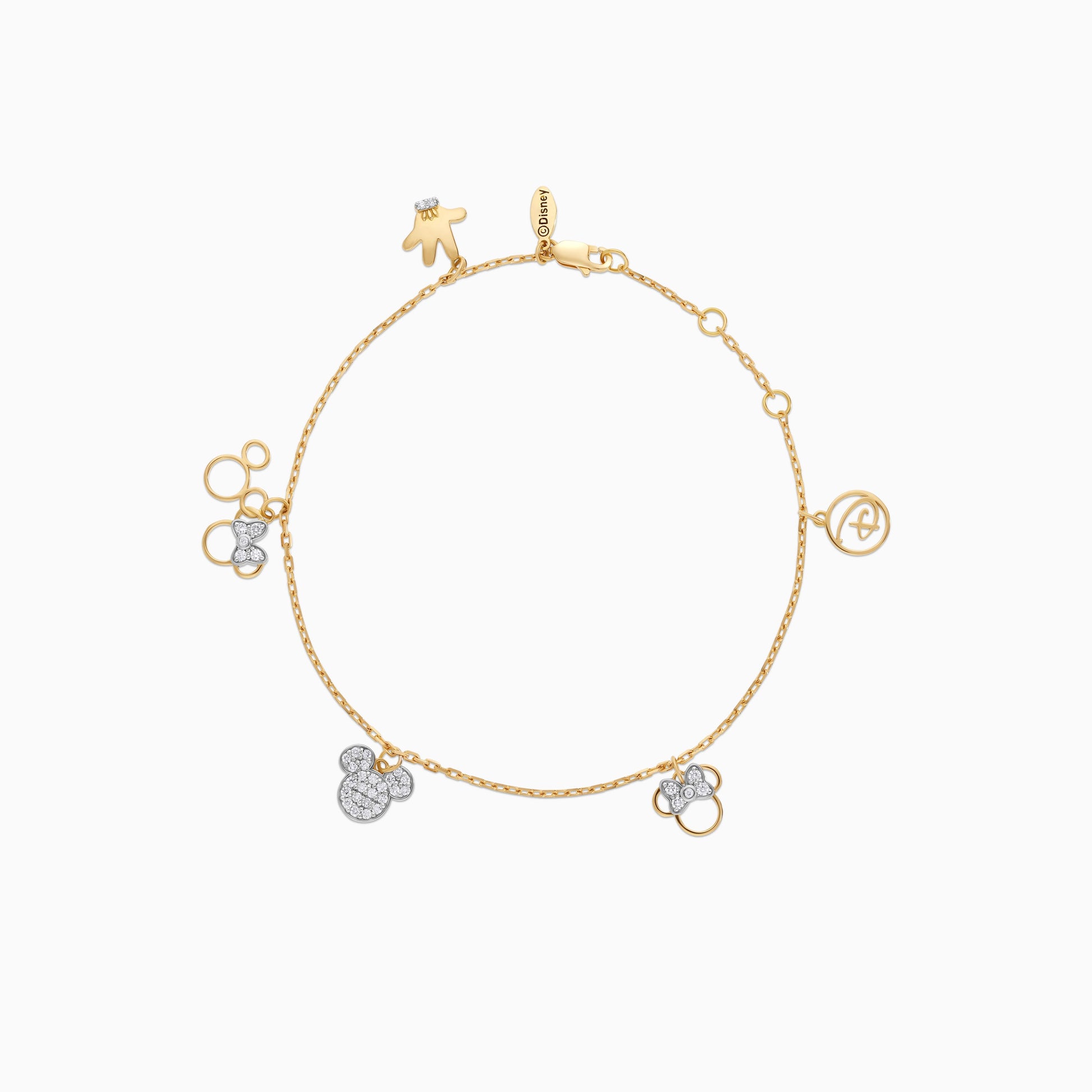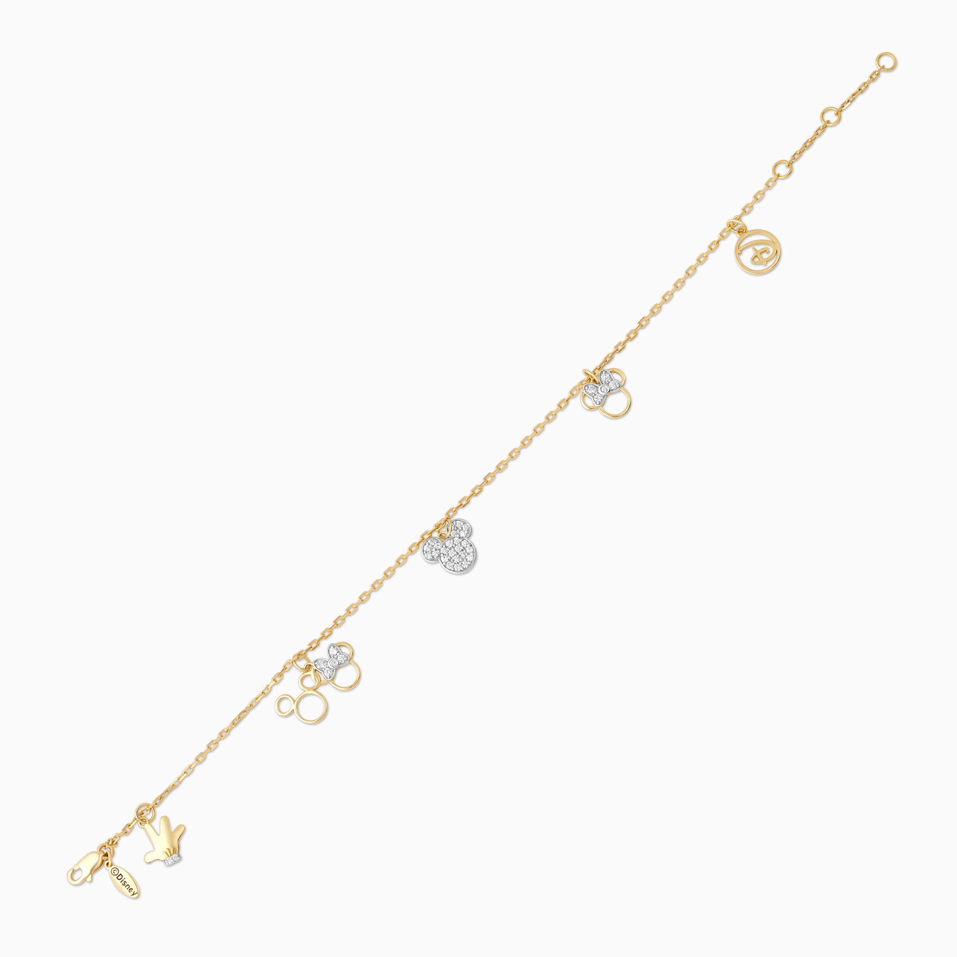 Disney- Mickey & Friends- 18k Yellow Gold- Mickey & Minnie Charms Bracelet studded with Natural Diamonds