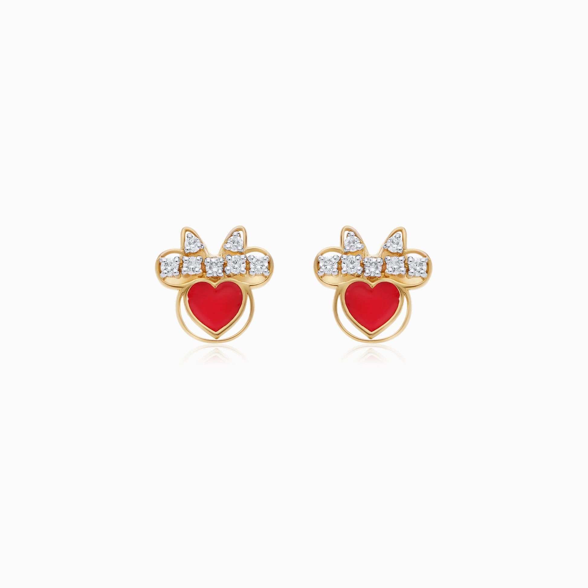 Minnie Mouse Hearts Stud Earrings in 18k Yellow Gold with Natural Diamonds & Red Enamel | Disney Collection