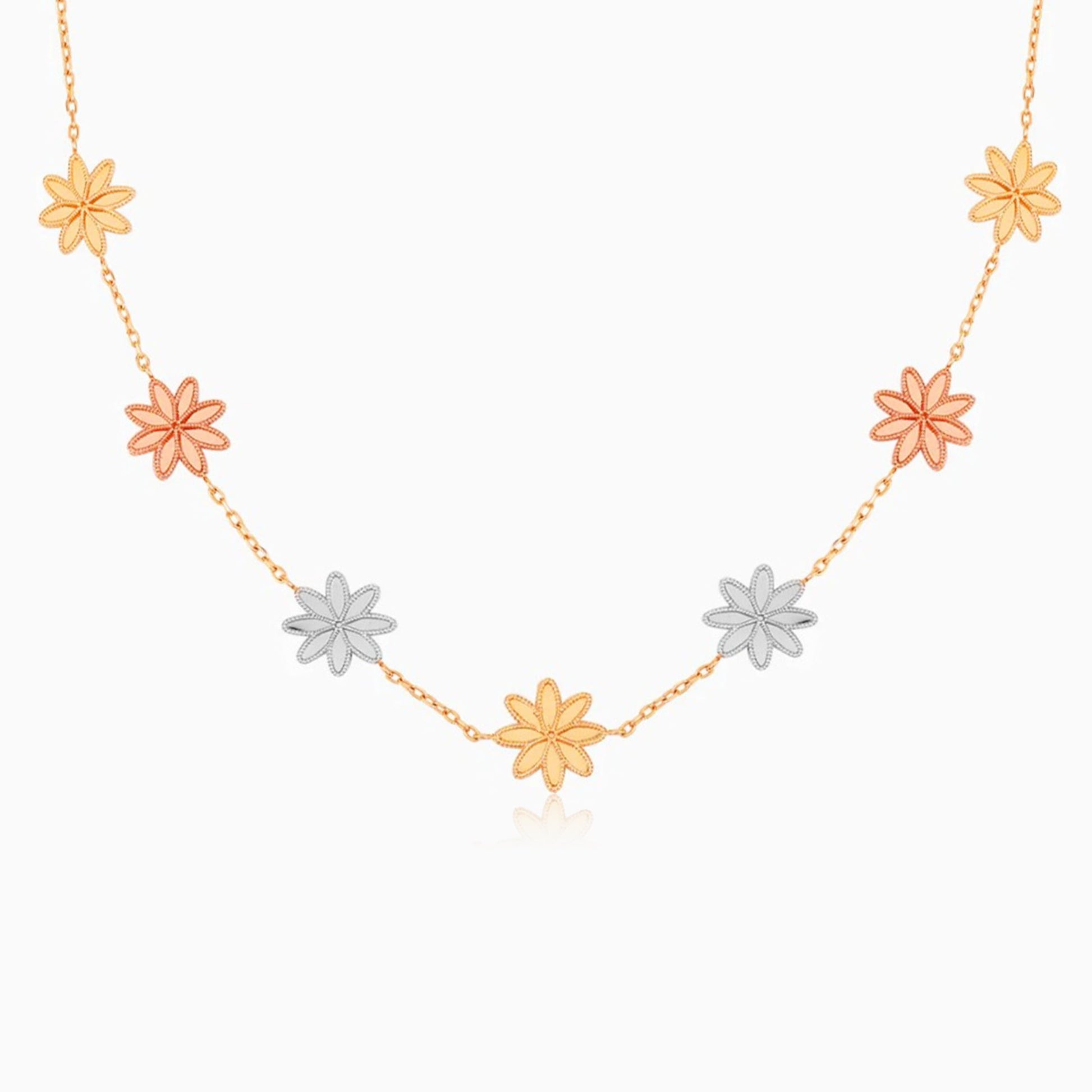 Multiple gold color necklace 18k from the Farfalla collection with flowers shaped
